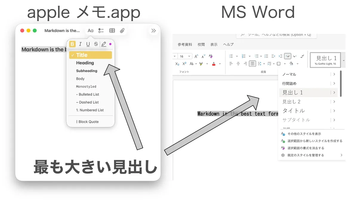 これがMarkdownの本質というか個人的に推す一番の理由です。